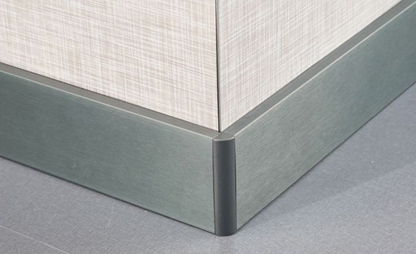 鋁合金踢腳線是一種新興的高檔建筑裝修材料,起裝飾作用,鋁合金踢腳線和陰陽(yáng)角起著平衡視覺(jué)的作用,利用它們的線形感覺(jué)及材質(zhì)、色彩等在室內(nèi)相互呼應(yīng),可以美化裝飾居室;踢腳線和收邊條經(jīng)過(guò)嚴(yán)格的技術(shù)工藝處理(表面磨砂氧化處理,表面噴涂或表面拉絲氧化處理),特別適合于高級(jí)賓館,酒店,公共場(chǎng)所及高級(jí)別墅裝飾之用。