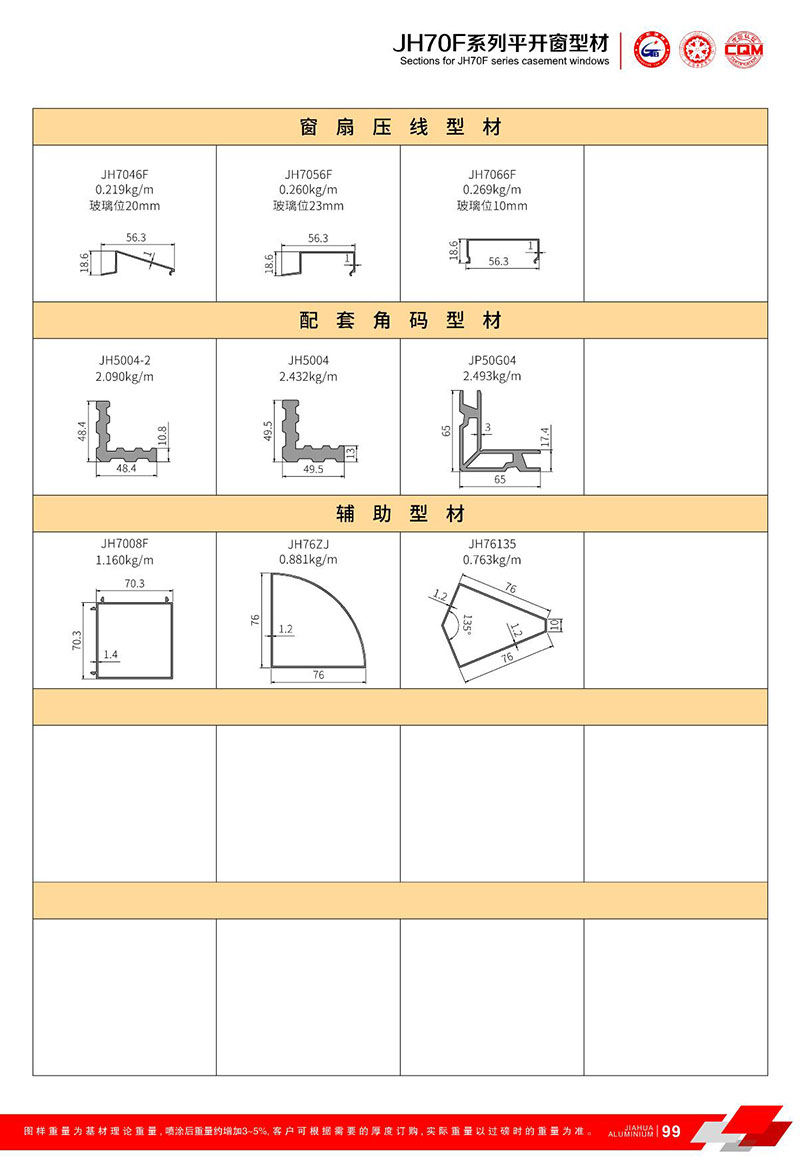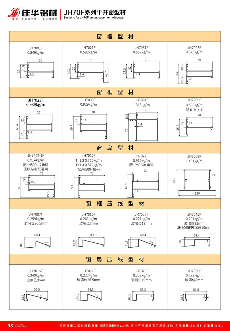 鋁型材規格型號:JH70F